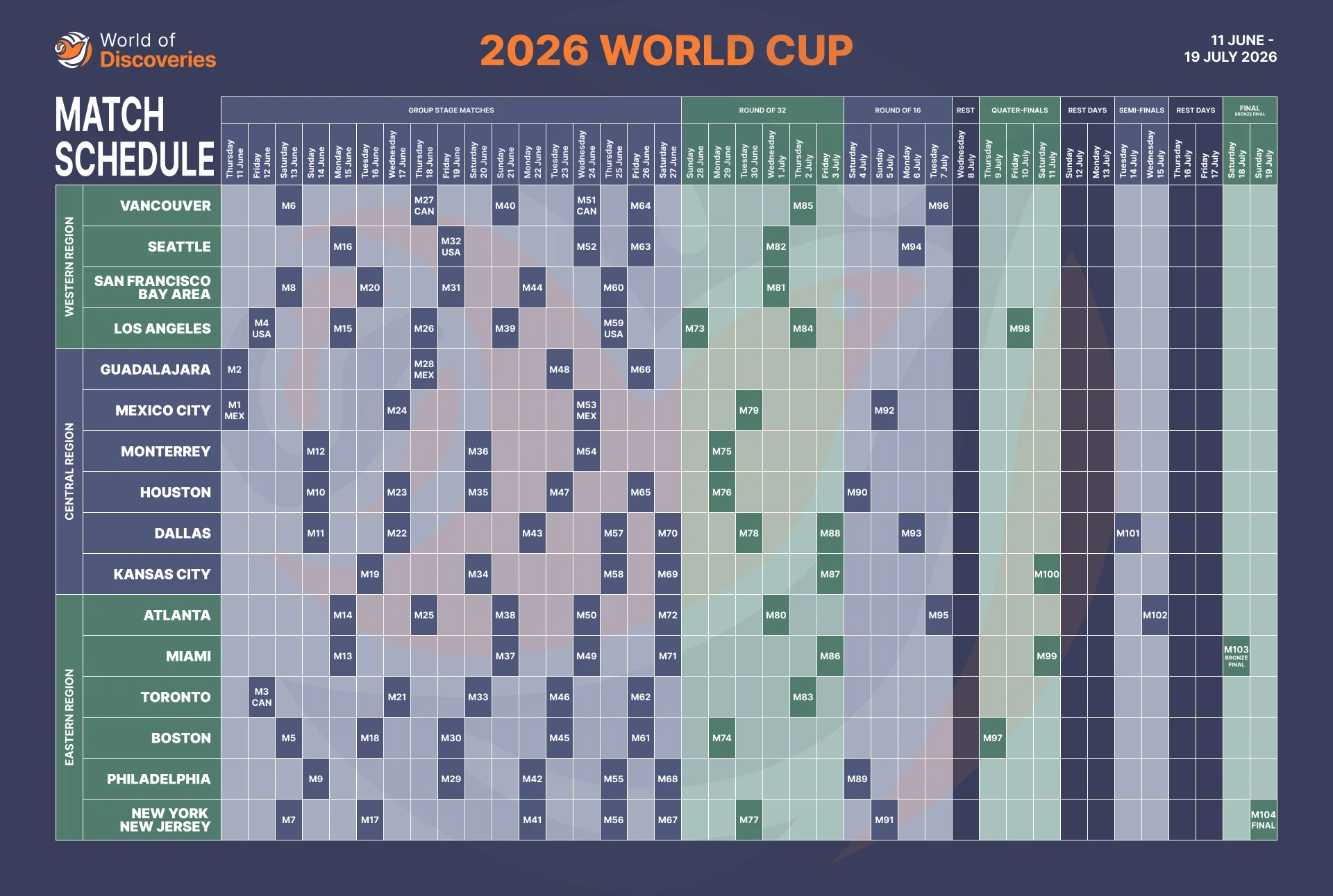 Paquetes de la Copa Mundial 2026 EE.UU., Canadá, México: 11 de junio - 19 de julio de 2026