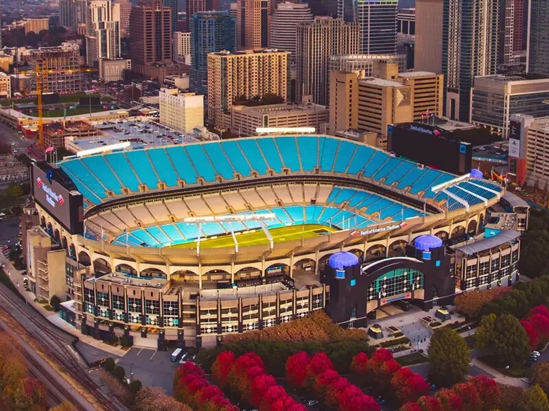 El Bank of America Stadium es un estadio al aire libre con capacidad para 74.867 espectadores, conocido por su característico diseño en forma de cuenco y su ambiente acogedor. Inaugurado en 1996, el estadio ofrece excelentes vistas desde todos los ángulos, gracias a su disposición en gradas. Situado en el corazón de Charlotte, el estadio es fácilmente accesible y está rodeado de los vibrantes barrios de la ciudad. Su llamativo exterior y sus modernas instalaciones lo convierten en un lugar ideal para grandes acontecimientos deportivos y conciertos. Con su estructura al aire libre, el Bank of America Stadium ofrece a los visitantes la mezcla perfecta de comodidad y emoción.